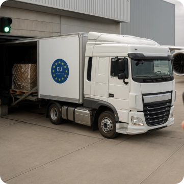Soweit beförderte Luftfracht/-post nicht am Lieferort abgegeben, sondern durch weitere Fahrzeuge transportiert wird, ist es möglich, diese unmittelbar von einem Fahrzeug in das weitere Fahrzeug umzuladen. Dabei darf an Stelle eines Fahrzeuges auch eine zur Beförderung vorgesehene Wechselbrücke genutzt werden.