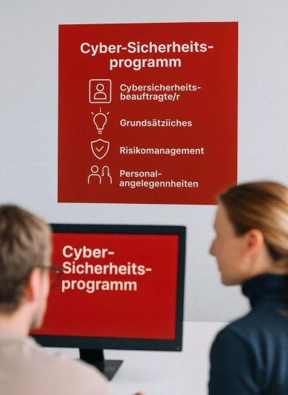 Ein wirksames Cyber-Sicherheitsprogramm muss mehr leisten als nur technische Schutzmaßnahmen. Es umfasst klare Strukturen, definierte Prozesse und eine gelebte Sicherheitskultur im Unternehmen. Wesentliche Anforderungen sind:Risikobewertung & Strategie – Identifizierung relevanter Bedrohungen und Entwicklung einer maßgeschneiderten Sicherheitsstrategie.Technische Schutzmaßnahmen – Schutz von Netzwerken, Endgeräten und Daten nach dem Stand der Technik.Awareness & Schulung – Sensibilisierung der Mitarbeiter für Themen wie Phishing, Social Engineering oder sichere Passwörter.Notfall- & Incident-Response-Planung – klare Handlungsanweisungen im Falle eines Sicherheitsvorfalls.Kontinuierliche Überprüfung & Verbesserung – regelmäßige Audits, Tests und Anpassungen an neue Bedrohungen.Mit unserer Erfahrung in der Konzeption und Umsetzung von Cyber-Sicherheitsprogrammen unterstützen wir Unternehmen dabei, genau diese Anforderungen erfolgreich zu erfüllen. Wir entwickeln Lösungen, die zu Ihrer Organisation passen – praxisnah, effizient und zukunftssicher.